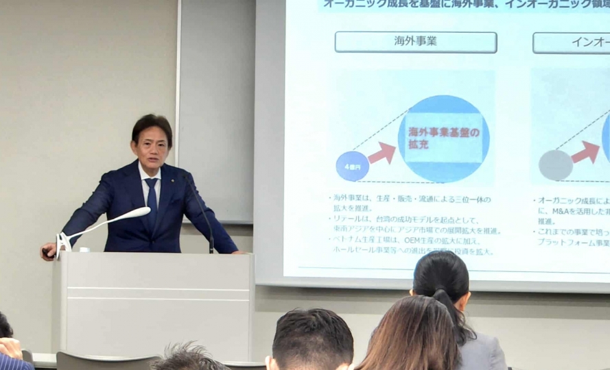 当日は、代表取締役社長 貞松隆弥より、2025年8月期の決算概要、今後の事業戦略および経営計画についてご説明いたしました。