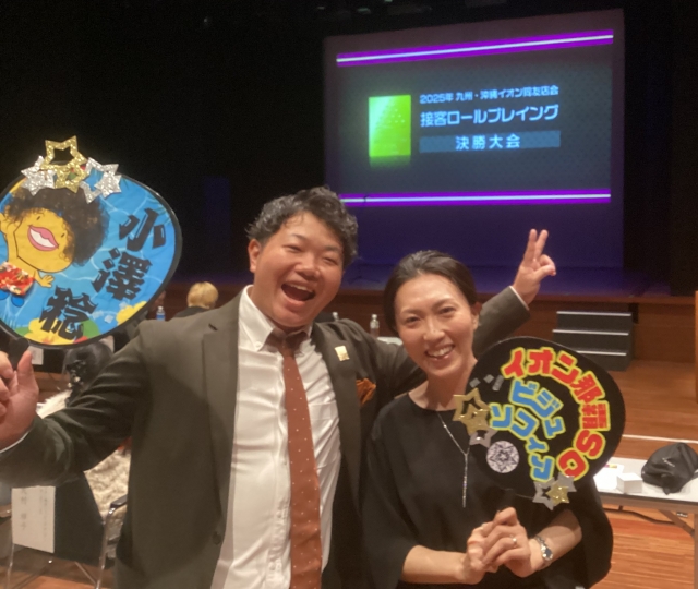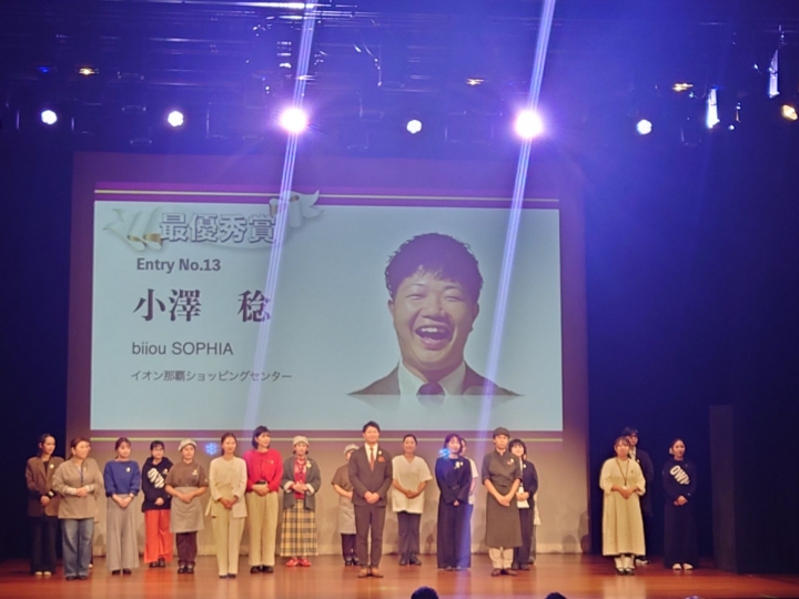 2025年11月6日、ビジュソフィア イオン那覇店の小澤 稔(おざわ みのる)店長が、「2025年度 九州・沖縄イオン同友店会 接客ロールプレイング大会 決勝戦」において、見事優秀賞(第一位)を獲得しました。
